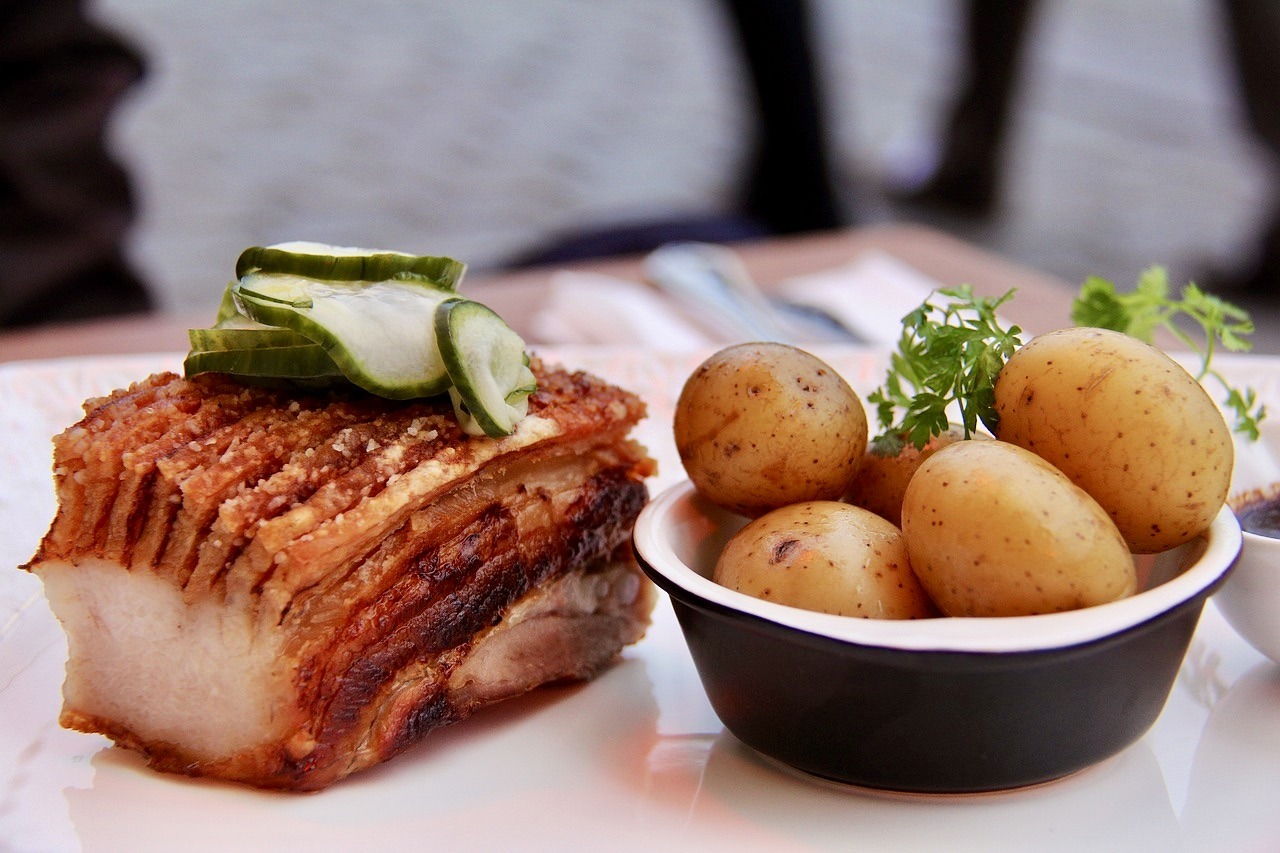 Denne Fredag byder vi på Gammeldags Flæskesteg med julesovs, hvide- & brune kartofler, hjemmelavet rødkål & dertil surt